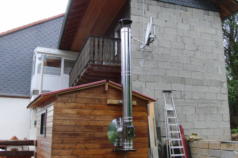 Edelstahlschornstein am Gartenhaus (mit Kombiteil)