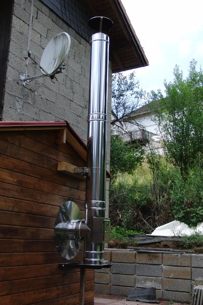 Edelstahlschornstein am Gartenhaus (mit Kombiteil)